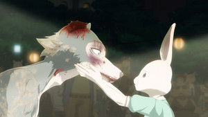 While getting pummeled by Riz, Legoshi realizes that they're not so different: he could easily have succumbed to his carnivorous instincts, too.